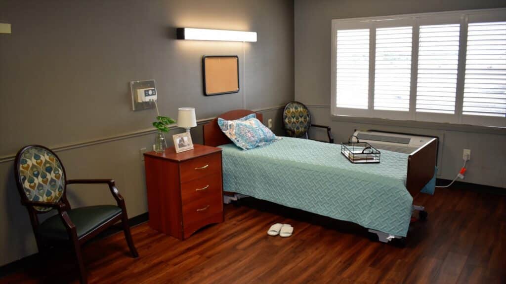We designed our comfortable guest rooms to be like what you might find at home. We also have a whirlpool/shower available. All guest rooms are individually climate controlled, have larger than average beds and include a resident call system in every room.